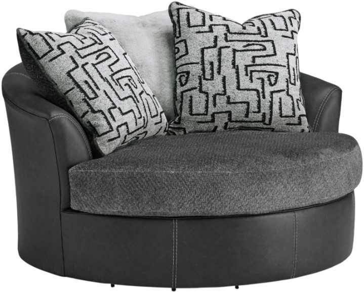 Appeal to your eye for ultra-contemporary design with this oversized swivel chair. Chic and sleek in dark neutrals, it pairs cozy fabric with faux leather for invitingly cool character. And with its robust size offering extra seating space, you can chill out in comfort and style.Read More