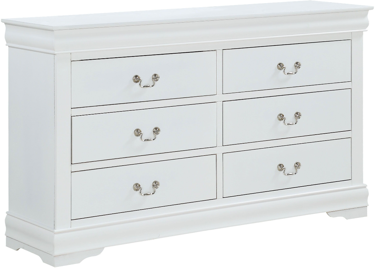 The Louis Philip dresser is the perfect combination of style and functionality, with its sleek white finish and 6 drawers ample storage space. Add a touch of sophistication to your bedroom while keeping your clothes organized and easily accessible with this stunning piece of furniture.Read More