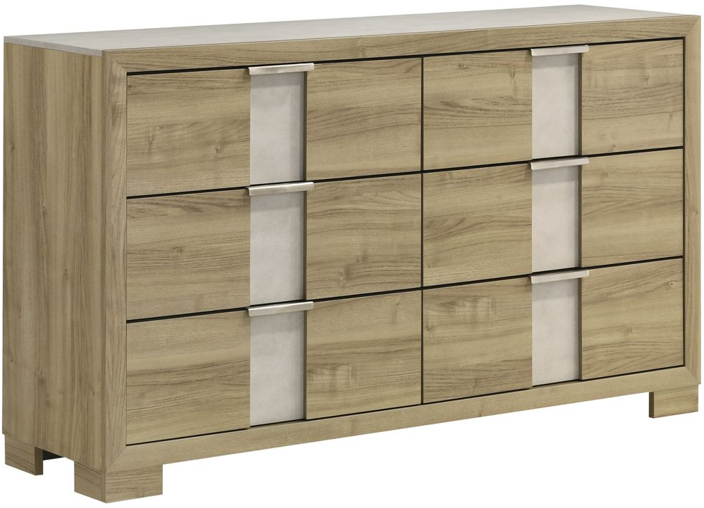 The Rangley Dresser from Crown Mark combines rustic charm with modern functionality, featuring a driftwood finish that enhances its timeless appeal. With multiple spacious drawers, sleek metal handles, and sturdy construction, it offers ample storage while complementing various bedroom styles effortlessly.Read More