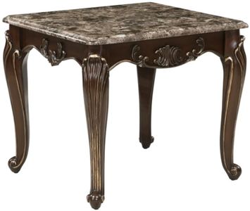 An elegant combination of traditional elements is paired to create the timeless look of the Balthasar Collection. Genuine marble tops the end table, while supported by classic cabriole legs. The table’s apron features decorative scroll detail, solidifying the traditional styling. Complementing the brown tone marble is the cherry finish, accented by gold tipping.Read More