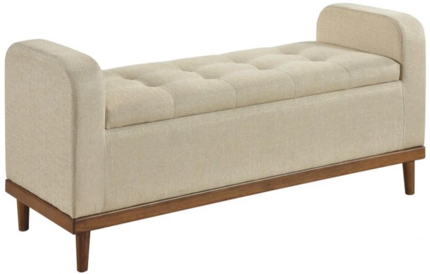 Mid-Century Modern lines define the design of the Brigitte Collection, providing both seating and storage in one functional piece. The accent bench’s interior space creates function beyond the button-tufted lift-top seat, providing the perfect space to store your decorative pillows and blankets.Read More