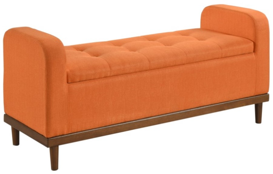 Mid-Century Modern lines define the design of the Brigitte Collection, providing both seating and storage in one functional piece. The accent bench’s interior space creates function beyond the button-tufted lift-top seat, providing the perfect space to store your decorative pillows and blankets.Read More