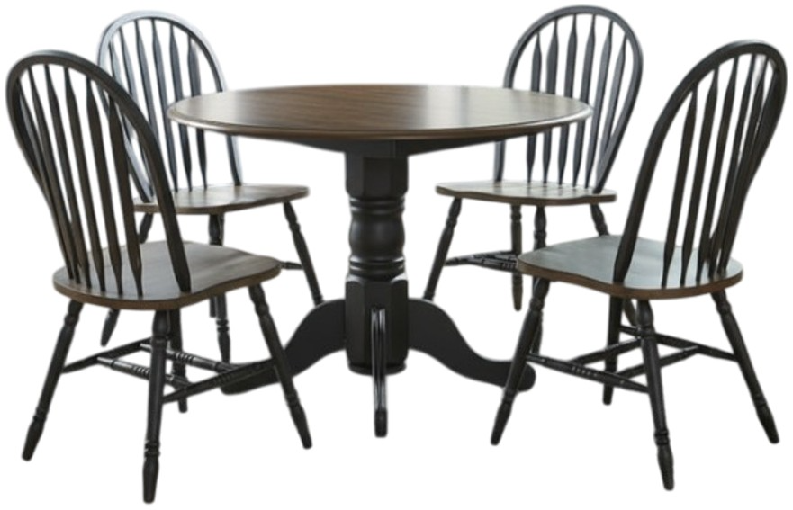 Create the décor of your dreams with the Carolina Crossing five-piece drop leaf set. Crafted with excellence using rubberwood solids, this set features an antique honey and black finish with heavy distressing and includes the drop leaf table and four Windsor side chairs.Read More