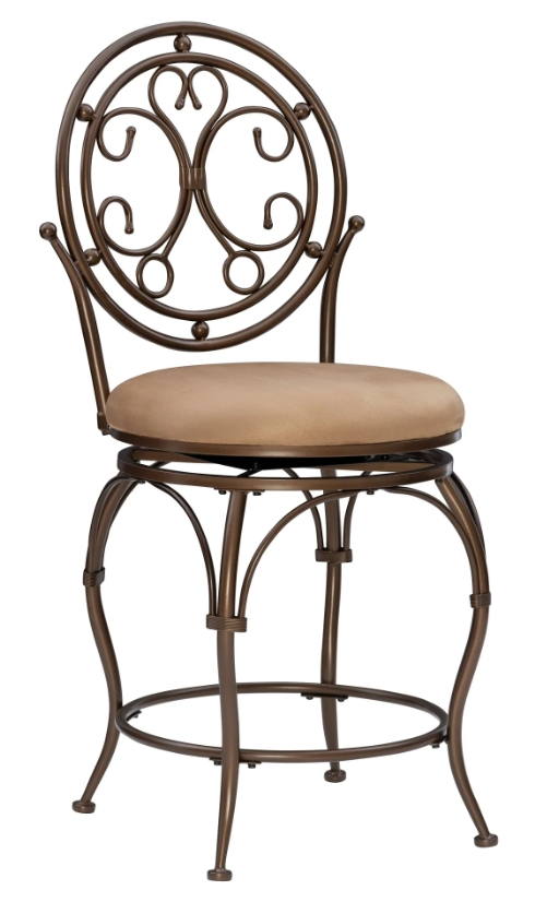 Refined design and elegant detail make this counter stool a beautiful home addition even before you consider the comfort this oversized 400 lb. Capacity furniture piece provides. The warm bronze finish, charming scroll back styling and plush tan microsuede upholstered seat make this metal stool even more inviting.Read More