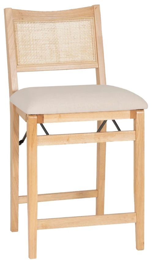 Bring sleek sophistication to your space with our Folding Counter Stool. Finished in a smooth black lacquer or natural stain, this stool features a chic cane/rattan back that adds texture and style. The comfortable cream upholstered seat, made from 100% woven polyester, offers a soft surface that's easy to clean.Read More