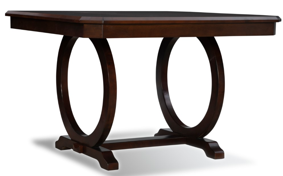 Sleek and contemporary, the brigham gathering table is eye-catching and bold. Perfect for adding slight drama to a dining space, the table features two large open circle sides each balanced on a straight lined base. The square shaped tabletop has flat corners.Read More