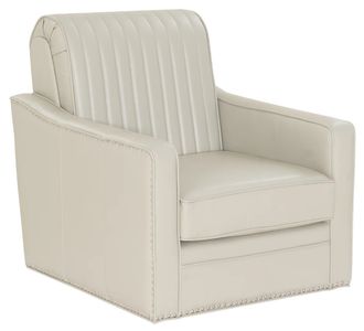 Command attention and unwind in style with this sleek swivel accent chair. Wrapped in supple faux leather and finished with nickel nailhead trim, it pairs modern sophistication with everyday comfort. A smooth 360° swivel base and contoured channel-tufted backrest deliver both elegance and function.Read More