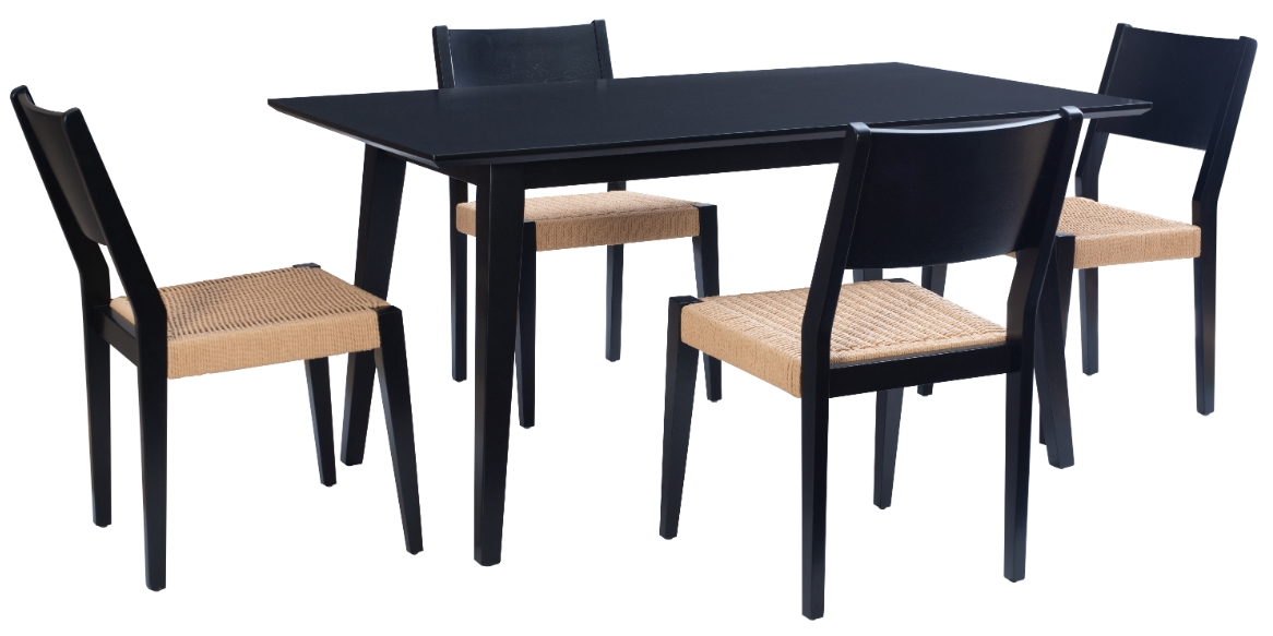 Transform family gatherings with this elegant mid-century modern dining set, designed to be the heart of your home. Clean lines and sleek silhouettes pay homage to classic design, while woven rope seats add a touch of rustic charm. The spacious 36” x 60” table, features rubberwood construction and comfortably accommodates up to six guests.Read More