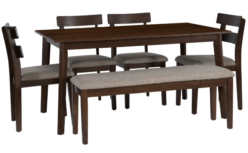 Complete 6-Piece Set: This dining set includes a dining table, bench and four matching chairs, providing a cohesive and stylish solution for your dining room or kitchen. With seating for 6, it’s perfect for everyday meals, intimate gatherings, or as a workstation, offering convenience and a polished look all in one.