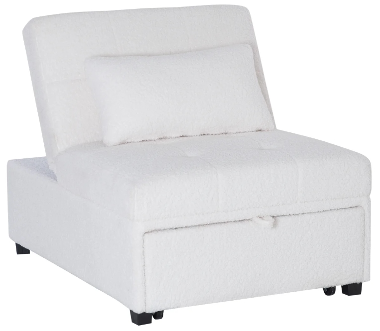 Ideal for Small, Multi-Purpose Spaces: Designed with compact living in mind, this piece maximizes space in apartments, studios, or dorm rooms. Its ability to consolidate multiple functions in one unit saves room while still delivering functionality and a modern look. The frame measures 43.5” x 32” in its chair and ottoman positions and 75” x 32" when extended as a twin bed.