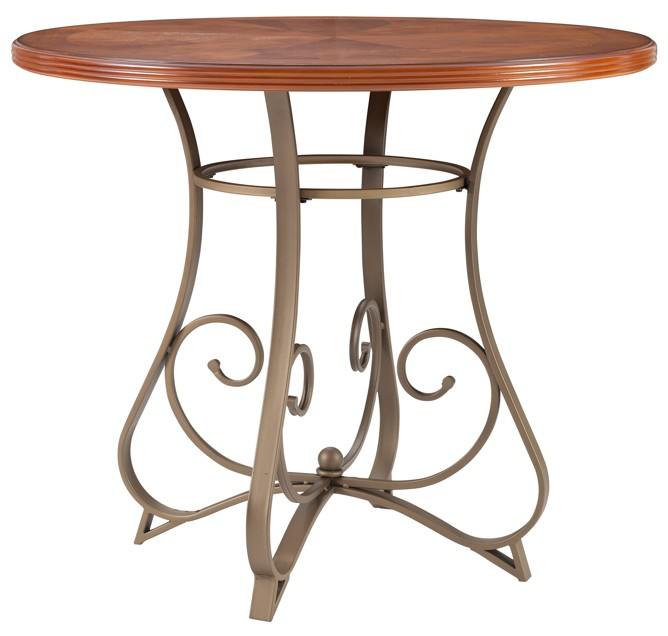 Classic style and graceful finishes ensure that friends and family will gather around the Dining Table for years to come. It offers a versatile look with a scroll-inspired base that adds just the right hint of intricacy to your dining area. Its tabletop boasts a medium brown cherry finish over decorative veneer.Read More