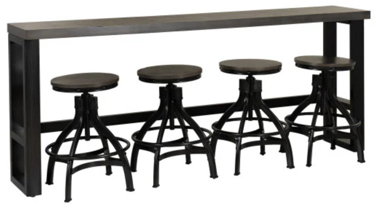 Redefine your living space with this bold 5-piece sofa bar set. Thoughtfully designed for casual dining, cocktail parties, or getting some work done from home, this ensemble includes a sleek bar-height table and four adjustable stools.Read More