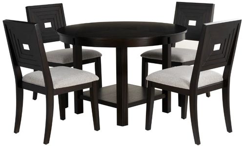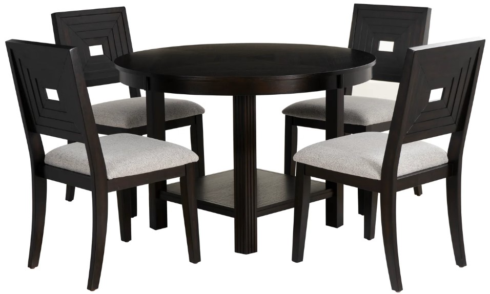 Transform your dining area with our inviting 5-piece dining set, crafted from durable rubberwood, oak veneer, and MDF. Finished in a rich espresso lacquer stain, this set exudes warmth and sophistication.Read More