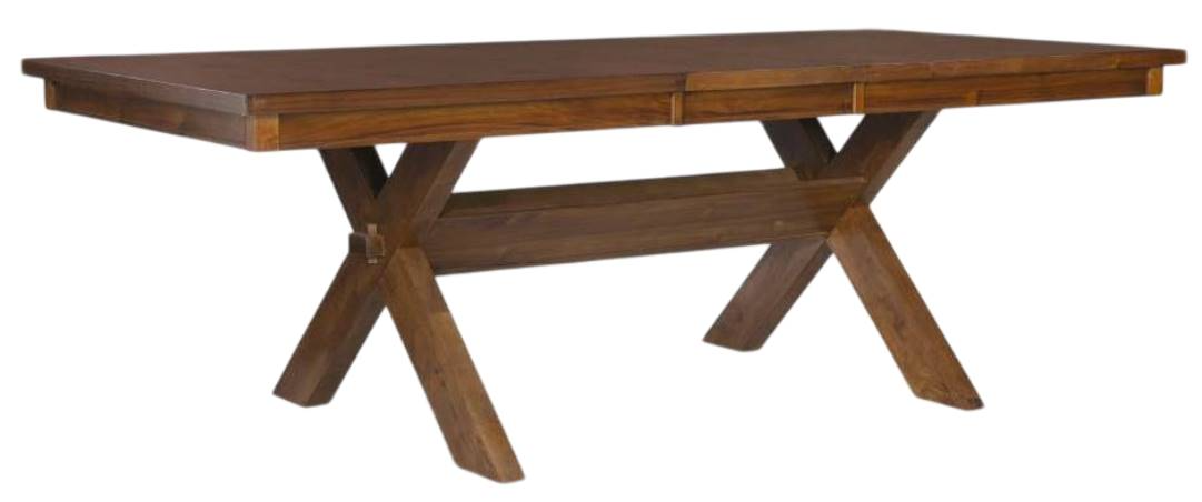 Expansive tabletop with a trestle style X cross base with a thick support beam for stability