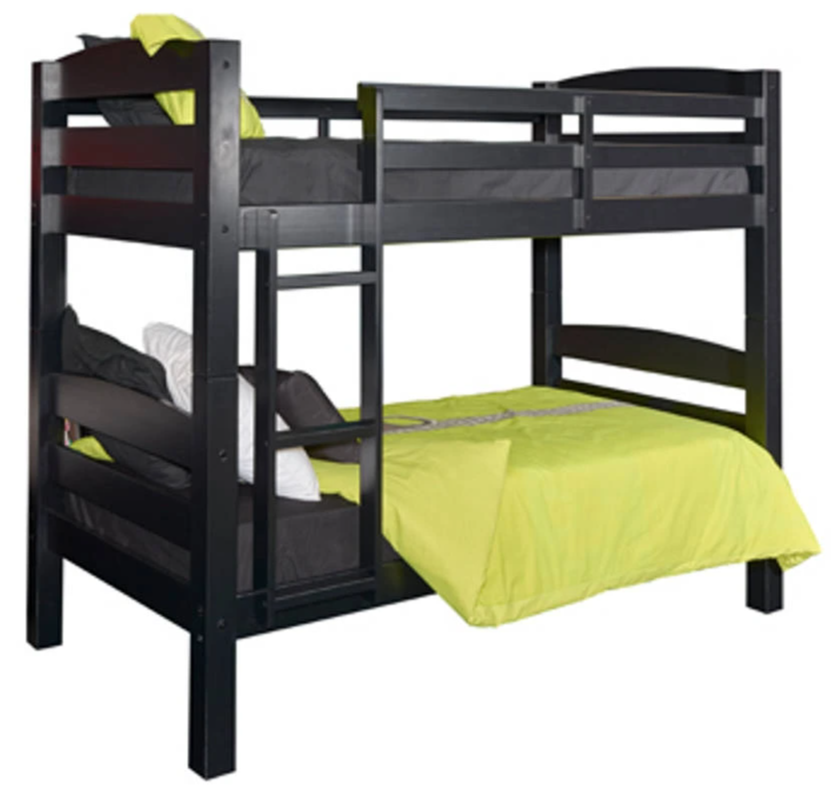 The Porter twin‑over‑twin bunk bed presents a sleek black frame crafted for durability and versatility. Each bunk features curved slat detailing, a built‑in ladder, and heavy‑duty wooden slats, supporting up to 400 pounds per bed without requiring a bunkie board. The beds also detach easily for two standalone twins.Read More
