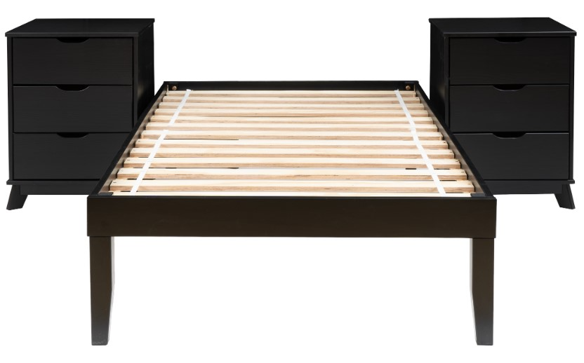 Add a touch of style and contemporary sophistication to your space with this sleek twin size bed and two nightstand combo. Constructed with solid pine wood and dressed in a rich black finish, the durable UV coating protects against stains and spills.Read More