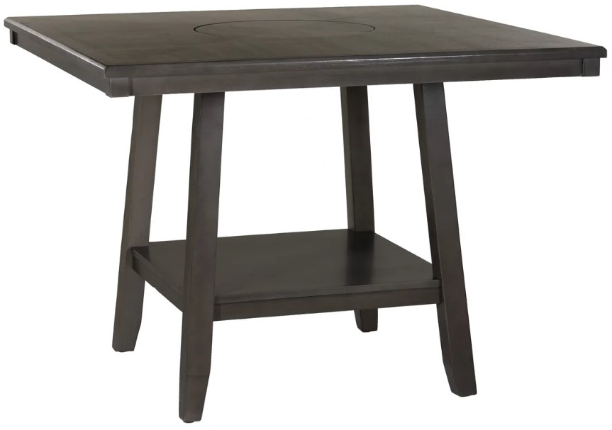 This counter height table is crafted with the perfect size and versatile aesthetic for any room. The square tabletop features a quarter cut walnut veneer with a tight and straight wood grain converging in the middle, available in brown or gray.Read More