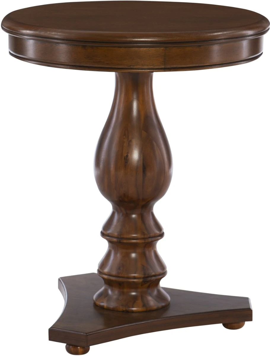 The Stanton accent side table is a refined pedestal-style occasional table finished in rich hazelnut tones. It features a turned wood pedestal atop a triangular base, offering classic traditional styling with a slender silhouette. Lightweight yet sturdy, it suits living rooms, bedrooms, or cozy reading nooks.Read More
