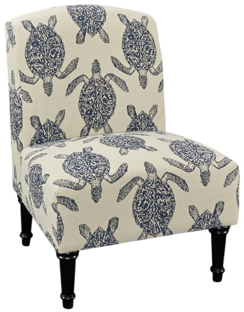 For an armless chair with beachy vibes, choose this accent chair with a terrific sea turtle motif. Upholstered in a navy and cream color palette, this piece is cushioned for comfort and designed to perk up ordinary living spaces as you yearn to feel the sand between your toes.Read More