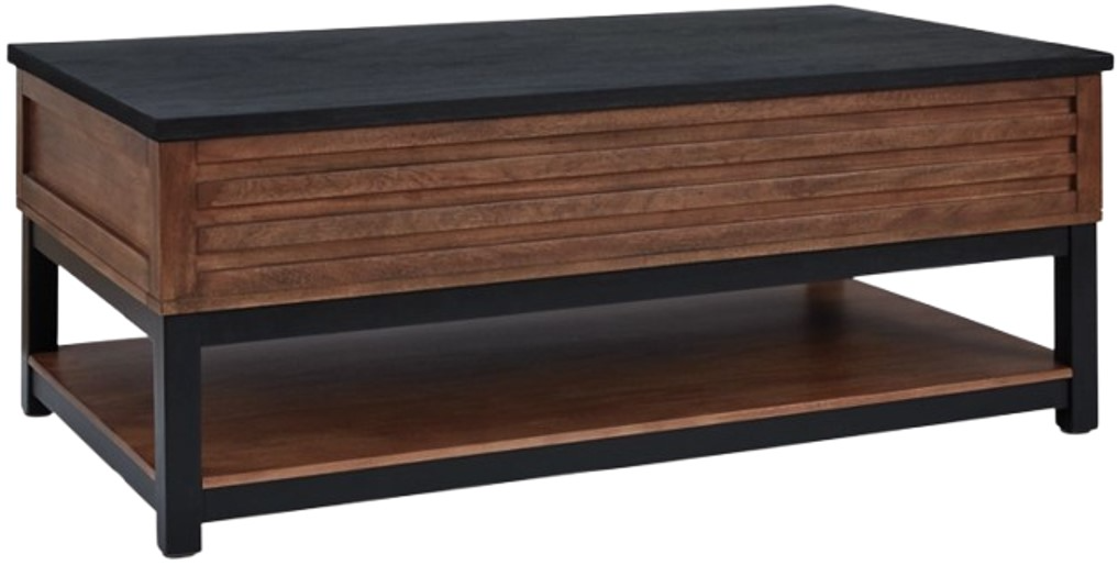 Double down on casual chic with the two-tone look of this lift-top coffee table. Its warm brown and matte black finishes reflect your eye for modern design. The trend-right slatted styling brings added charm. And with a handy lift top, working from home or catching up on a show with dinner is a breeze.Read More
