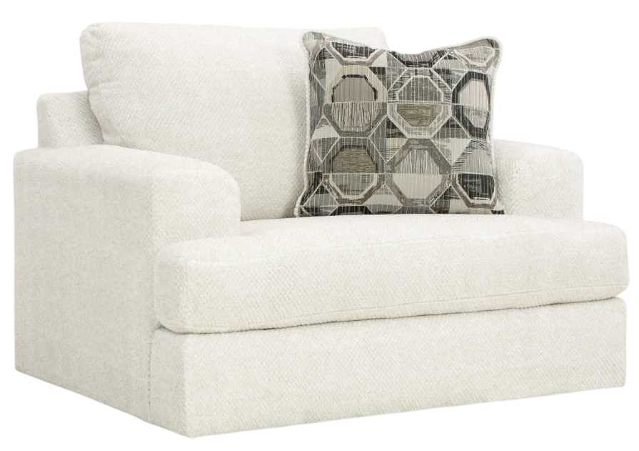 Craving casual refinement? This oversized chair has you covered. The decidedly contemporary frame cradles sizable cushions in an ultra-soft neutral hue, lightening the mood in your living room with simple style and everyday comfort. A geometric accent pillow perfects the chic-meets-cozy vibe.Read More