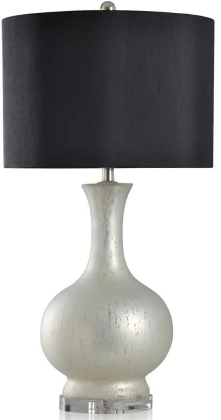 This table lamp from Stylecraft is shown in a Soft Silver body and Black shade, it comes with the dimensions of 16" in width and 31" in height. Making it a great addition to any room or space.Read More