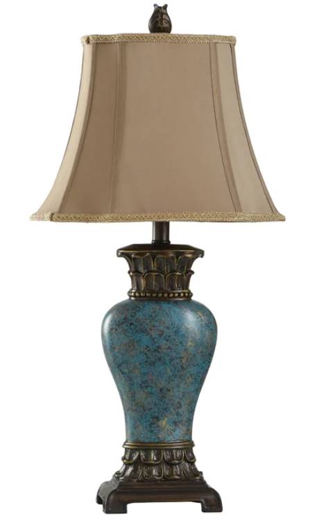 Complete your living room design with this table lamp from Stylecraft. Shown in dark brown and blue base and brown shade finish. Make a bold statement by incorporating this stunning table lamp into your home.Read More