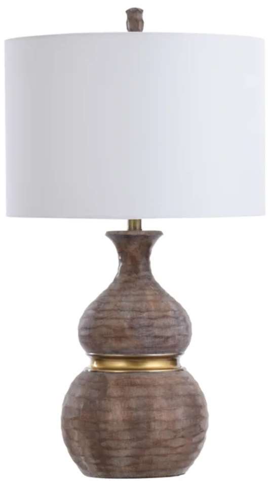This table lamp from Stylecraft is shown in a Brown body and White shade, it comes with the dimensions of 18" in width and 33" in height. Making it a great addition to any room or space.Read More
