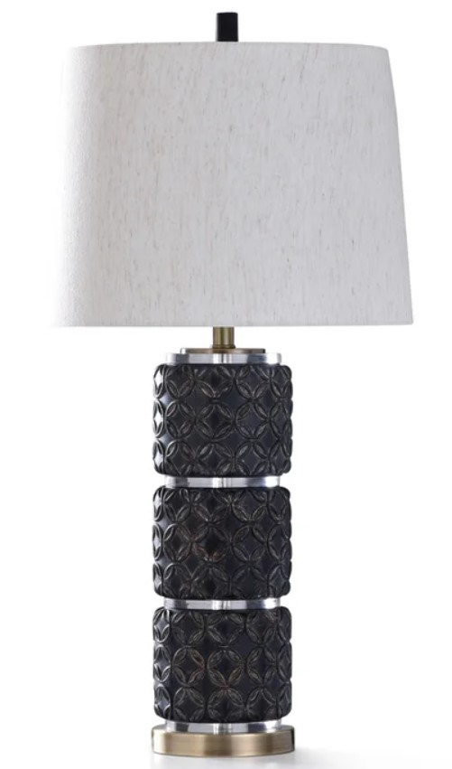 Elevate your room design with this table lamp from Stylecraft. Shown in black base finish with white fabric shade that will surely make a statement in any room design.Read More